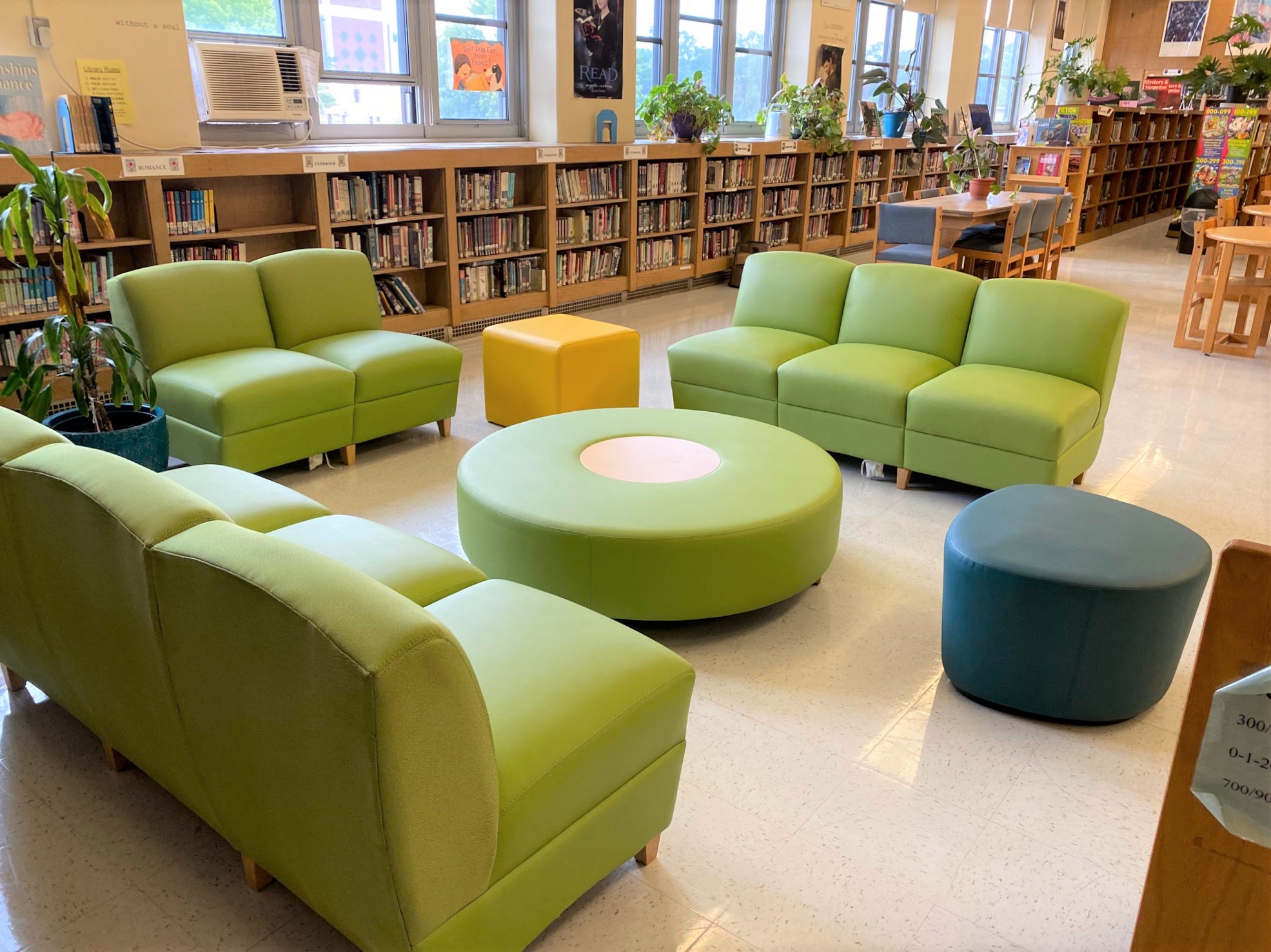 We love our new lounge area that was added to our library in March 0f 2023! This is the favorite hangout spot for our 6th graders during lunch time and after school!